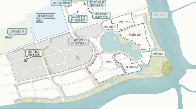 项目西侧是紫竹高新技术园区开云官方、北面是交大和华师大校园,以及紫竹基础教育园区,包含幼儿园至高中全龄段教育配套。
