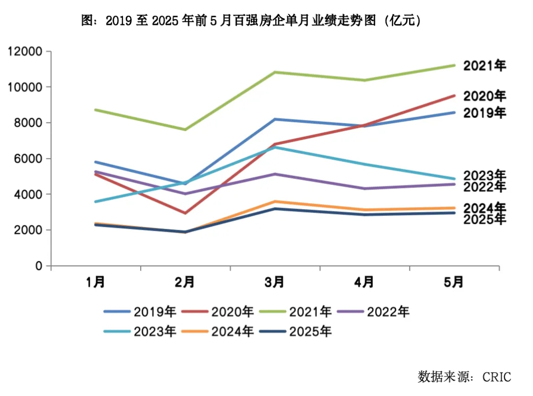 从企业表现来看,2025年5月超半数百强房企单月业绩环比提升,其中22家企业单月业绩环比增幅大于30%。如绿城中国、中海地产、中国金茂、绿地控股、电建地产等房企表现较好,单月业绩同环比均实现明显提升。